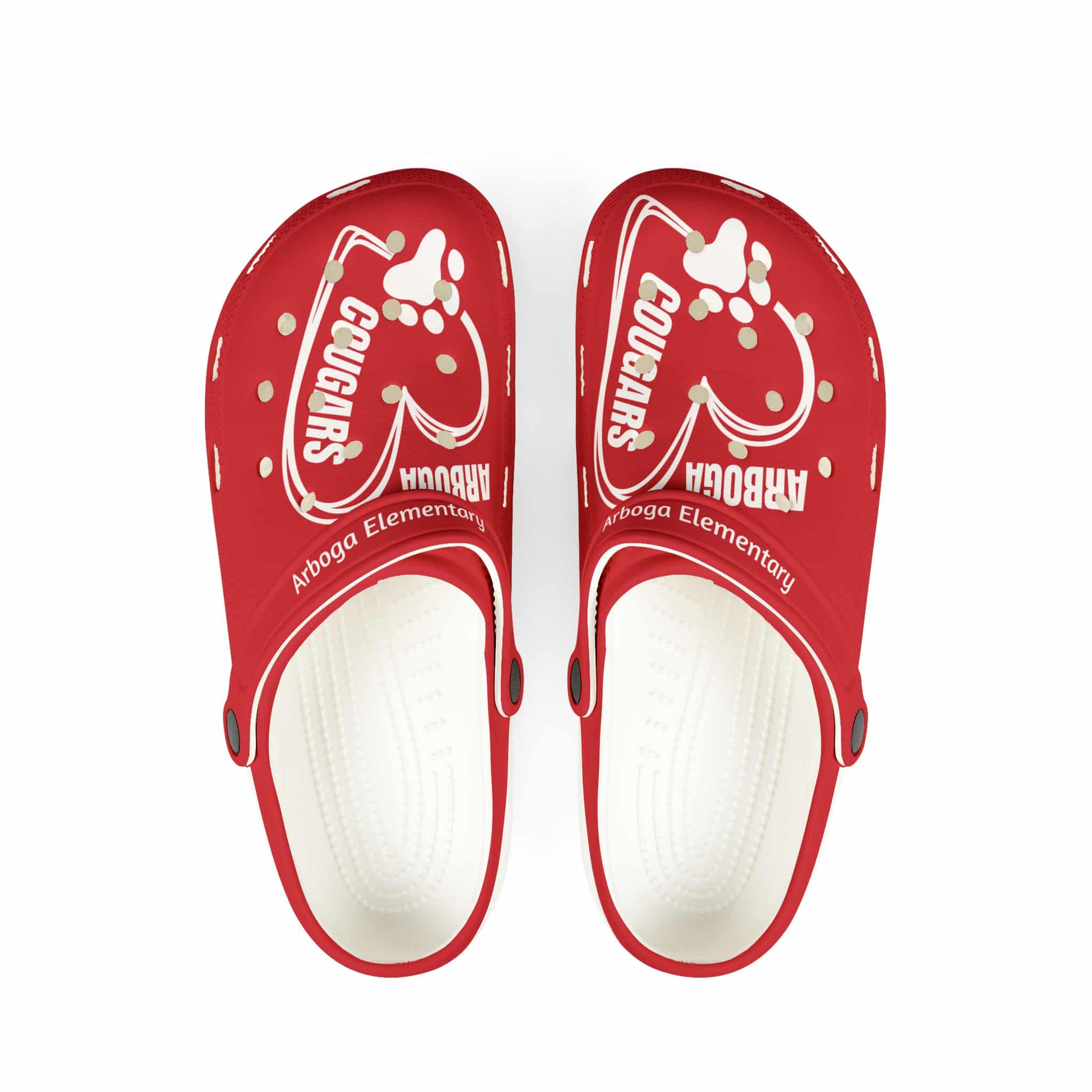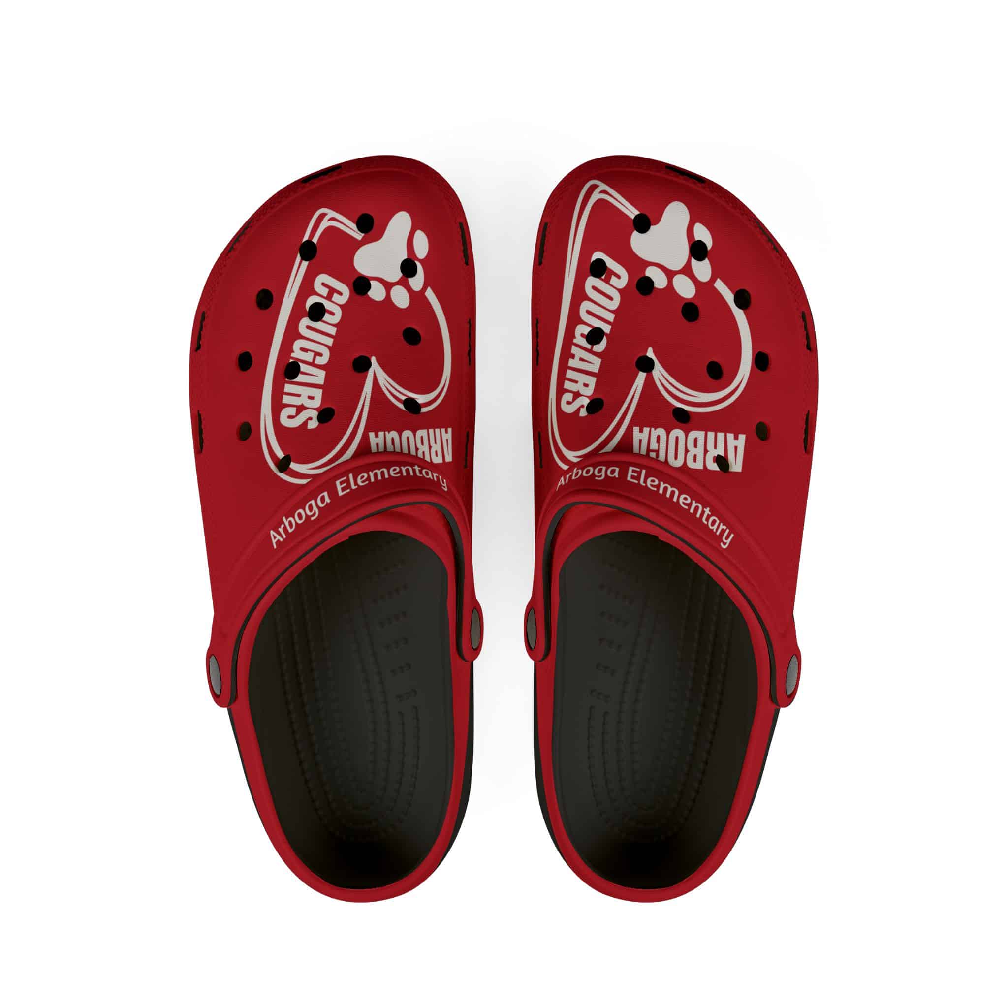 Show your support for the Arboga Elementary Cougars with these black and white printed clogs. Perfect for both indoor and outdoor wearing, these trendy EVA foam rubber shoes offer great comfort and anti-slip performance. Ideal for fans looking to represent their school spirit and wear with pride during school events and sports games.
